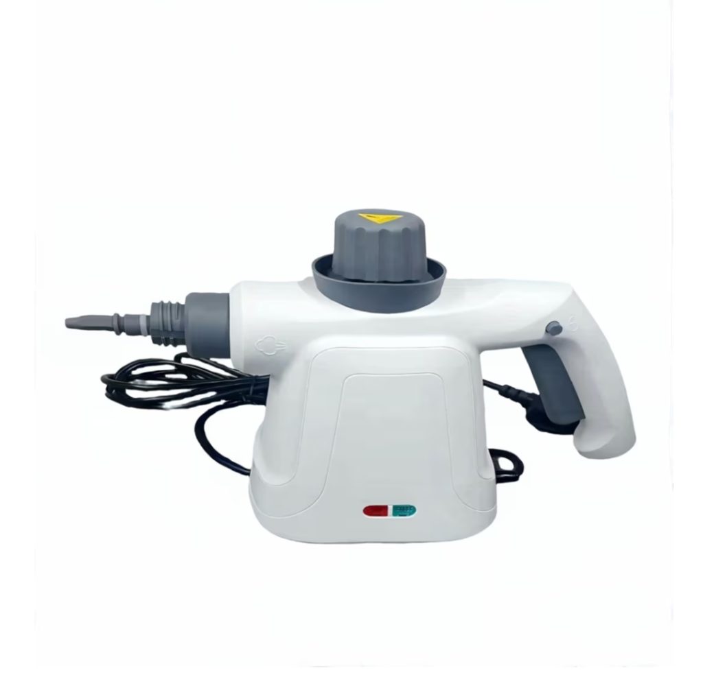 A compact cleaning device that uses high-temperature, pressurized steam to remove dirt, grease, and stains from various surfaces without harsh chemicals. Lightweight and easy to handle, it reaches tight spaces like corners and grout while helping sanitize areas by killing germs and bacteria. Suitable for kitchens, bathrooms, upholstery, tiles, and other household cleaning tasks.