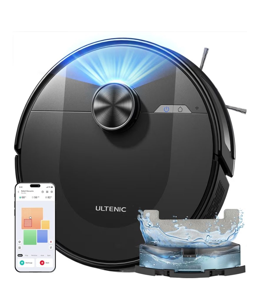Ultenic Robot Vacuum Cleaner with Mop – Powerful 8000Pa suction with 3-in-1 sweeping, vacuuming, and mopping. Advanced LiDAR navigation creates up to 5 smart maps