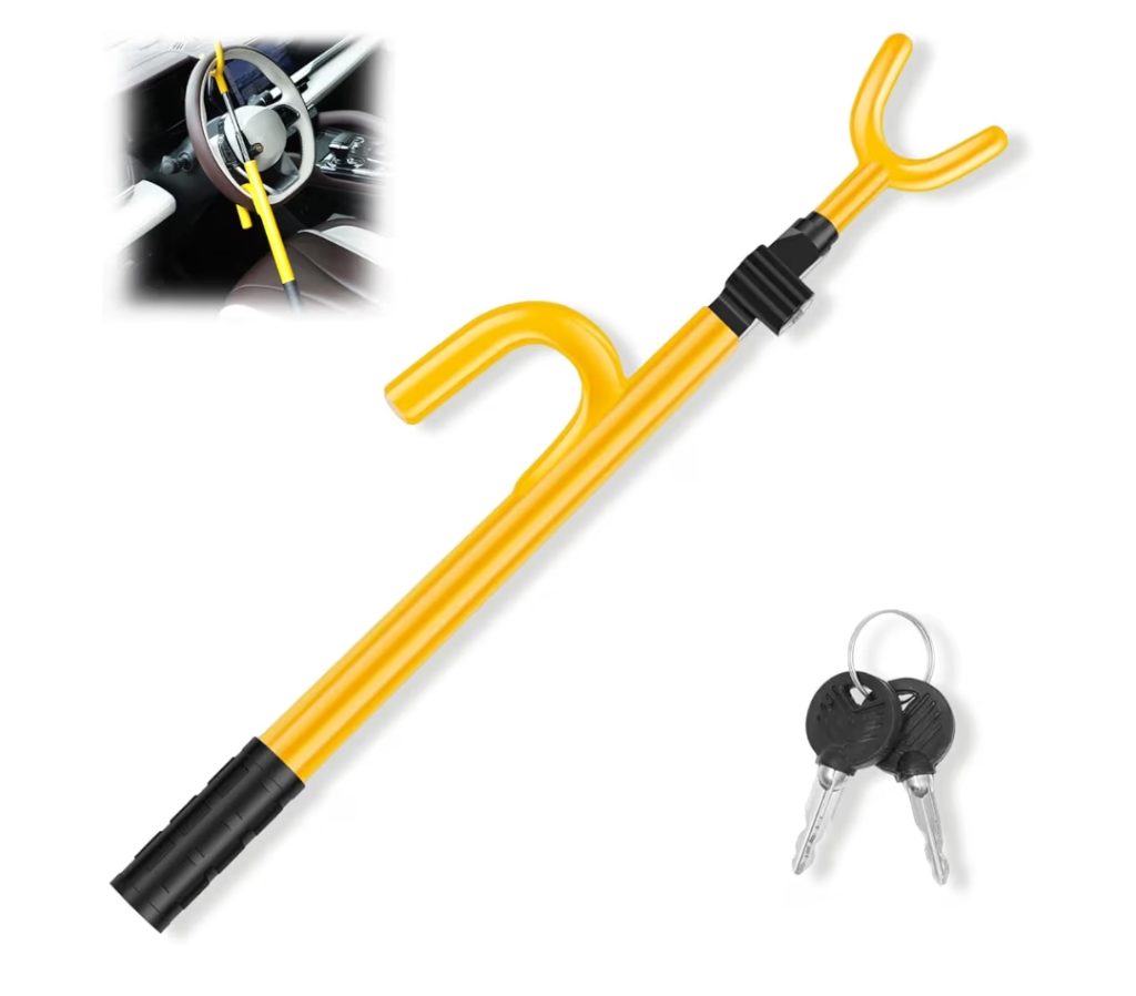 A heavy-duty anti-theft device designed to secure your steering wheel and prevent unauthorized vehicle use. Made from strong, durable materials with a high-security locking system. Easy to install and highly visible to deter thieves.