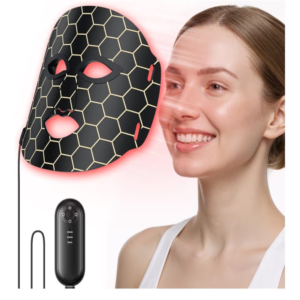 LED face mask helps improve skin by using light therapy to support collagen production and reduce acne, fine lines, and wrinkles. It is lightweight, comfortable