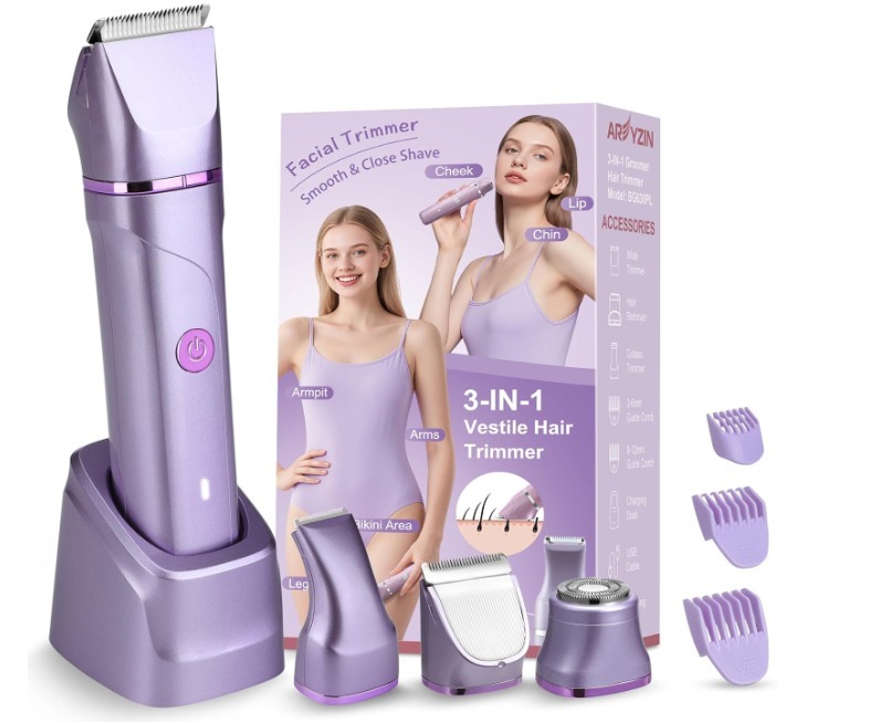 3-in-1 bikini trimmer for smooth, precise grooming. Includes multiple attachments for trimming, shaping, and shaving—gentle on sensitive skin and easy to use.