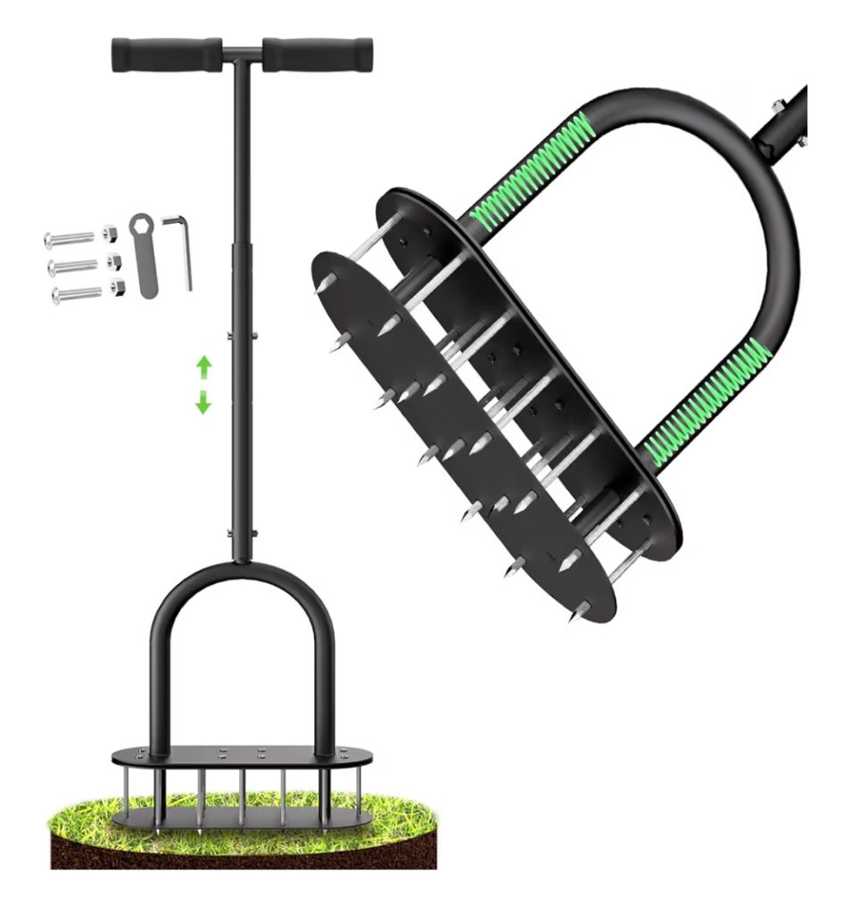 Manual lawn aerator is a simple gardening tool used to create small holes in soil, improving air, water, and nutrient flow to grass roots. It helps reduce soil compaction and promotes healthier, greener lawns with better growth.